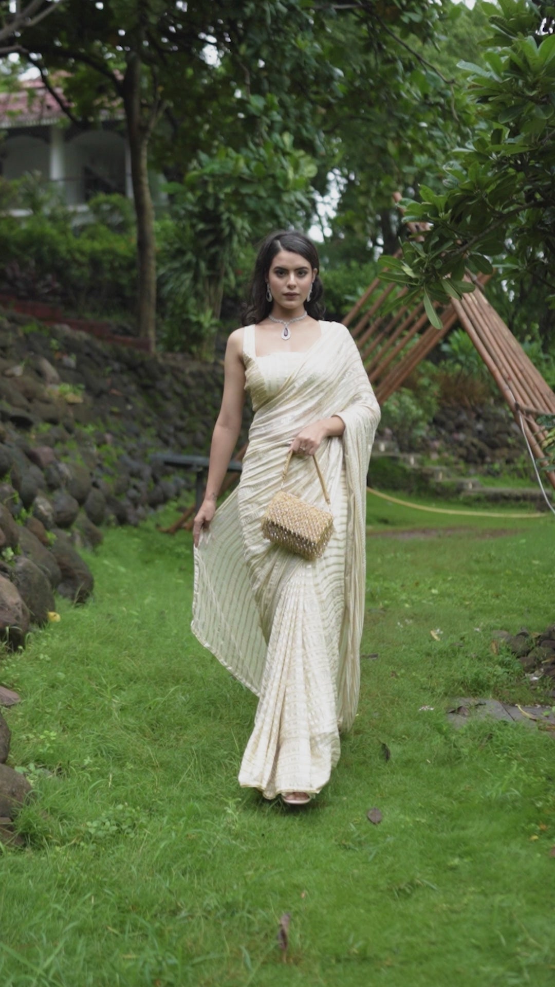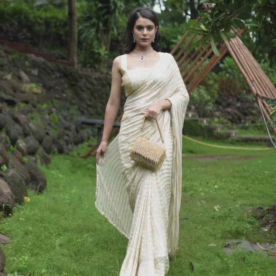 Ivory Cream Georgette Saree with Sequin Detailing and Heavily Embellished Blouse