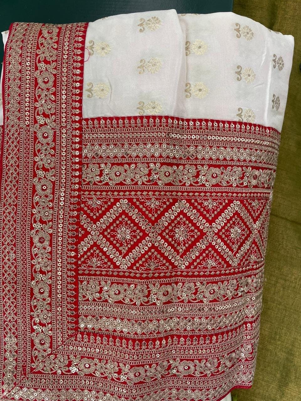 Classic and sophisticated in cream, this Silk Saree is adorned with delicate golden buti work throughout and finished with a striking red border enhanced with rich zari detailing. Perfect for festive occasions, weddings, or traditional celebrations.