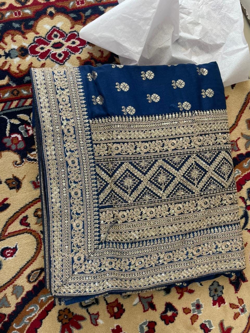 Dark Blue Silk Saree with Golden Buti Work and Rich Zari Border