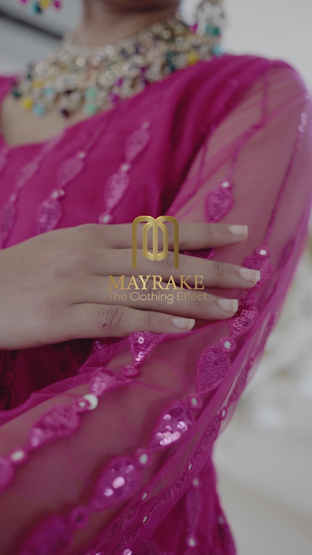 Add a touch of elegance and sparkle with this stunning Fuchsia Pink Super Net Kurta with Flared Palazzo Set. The short kurta is designed with luxurious super net and satin, offering a graceful look, while the flared palazzo complements the outfit beautifully. The V-neckline and full sleeves complete the stylish look, while the sequin and mirror work on the dupatta add a dazzling finish to your ensemble. This set is perfect for festive occasions or an elegant evening event.