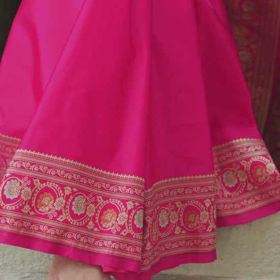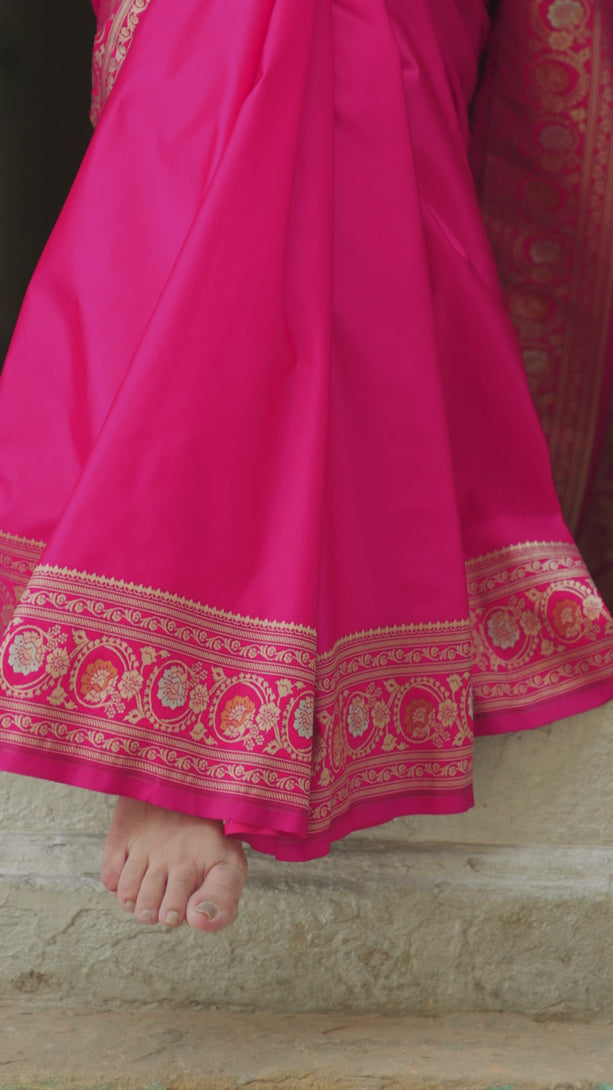 Handloom Fuchsia Pink Mashru Satin Silk Banarasi Saree