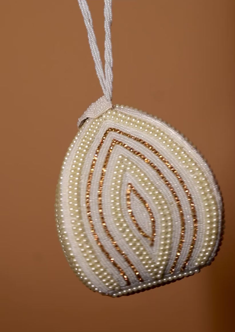 This stunning Rose Gold Potli is adorned with pearl and Swarovski work, featuring an elegant pearl frame and a handmade pearl handle. The luxurious velvet fabric and intricate detailing make it a perfect accessory for festivals, parties, and weddings.