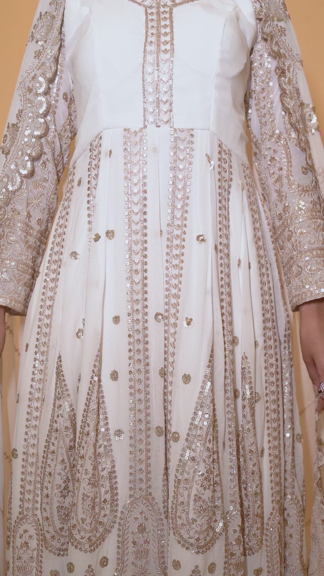Ivory Cream Anarkali Georgette Suit with Heavy Thread Overall Embroidery, Paired with Pants and Detailed Georgette Dupatta