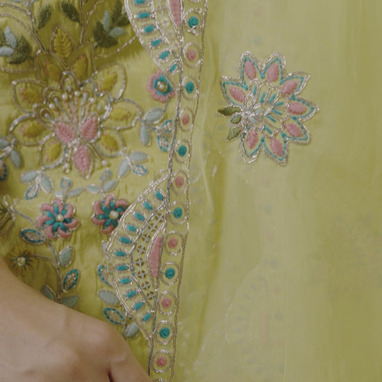 Lemon Green Crepe Garara Set with Pearl Embroidery