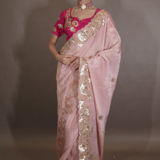 Rose Gold Shimmer Organza Saree with Pearl and Sequin Work