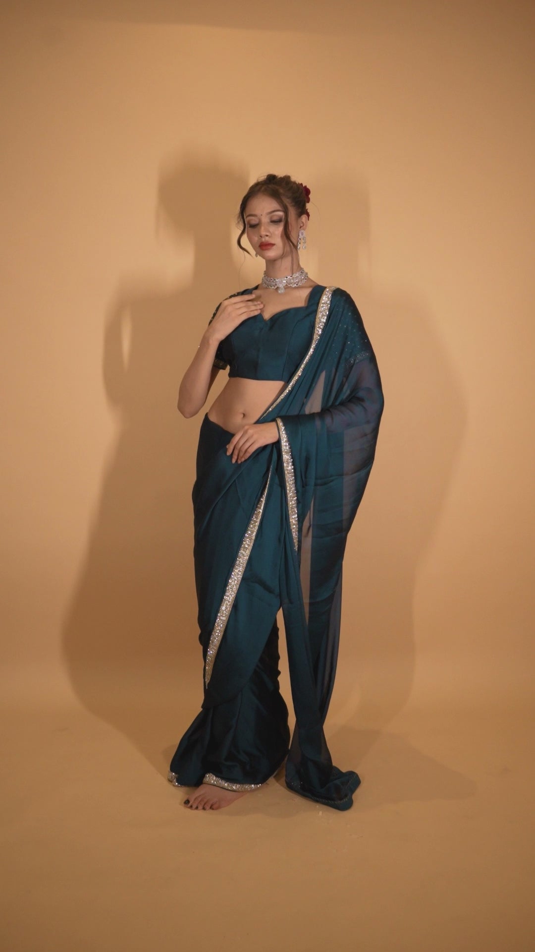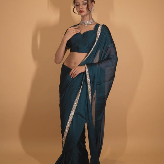 Peacock Blue Georgette Saree With Swarovski Work