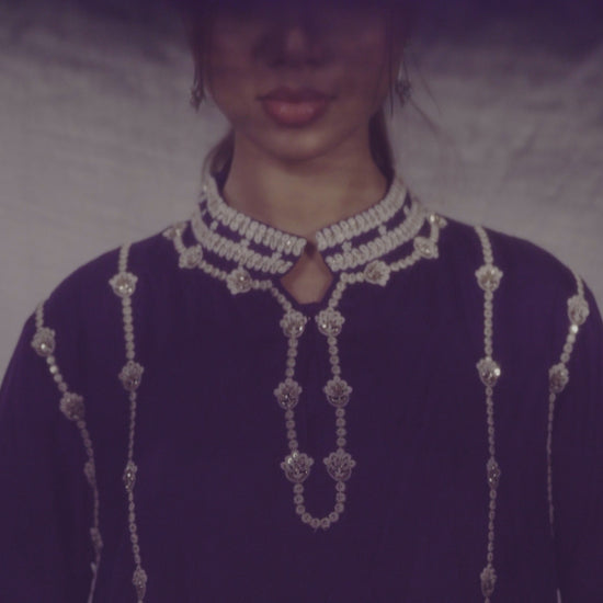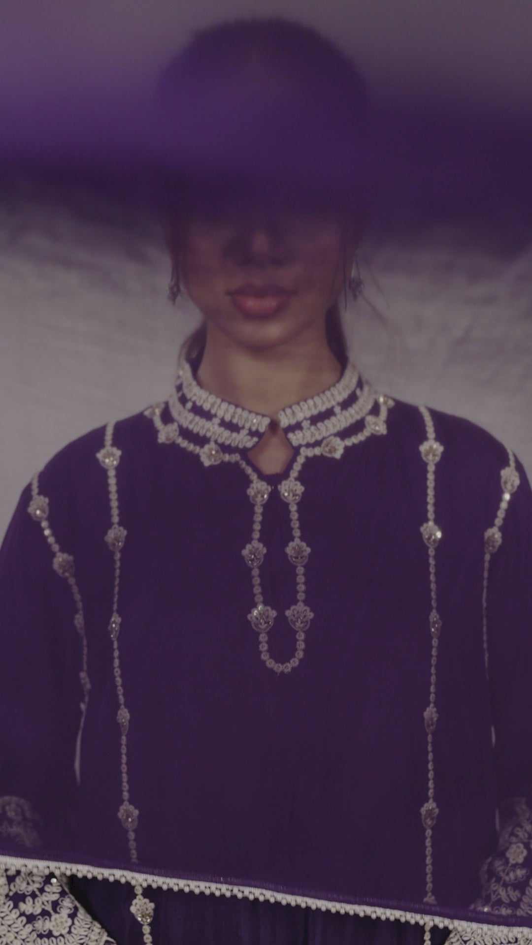 Purple Palazzo Crepe Kurta Set with Silver Embroidery
