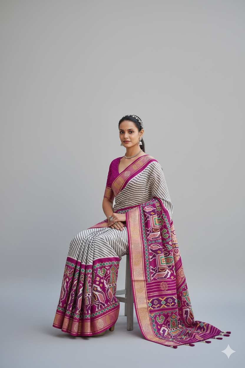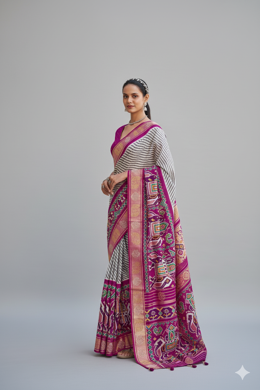 Work: Exclusive Silver Border with Patola Print Epoxy Work