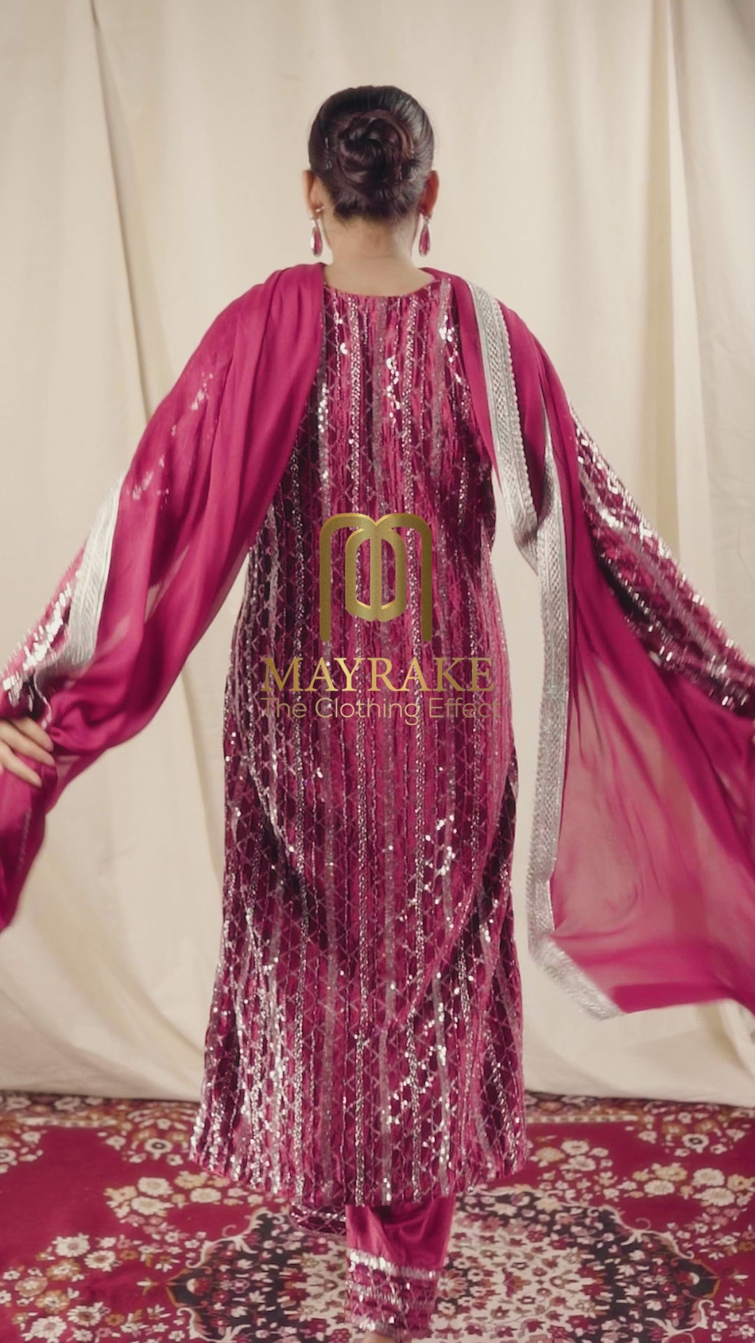 Exude elegance and grace with this Royal Maroon Velvet Sequined Suit, designed to impress with its luxurious full sequin work on the kurta and stunning lace detailing on the palazzo pant. The rich maroon velvet fabric and sophisticated design make this outfit perfect for any festive or special occasion, ensuring you stand out with effortless style.