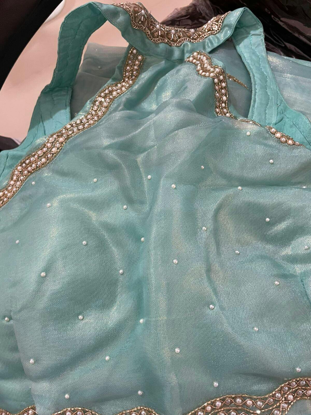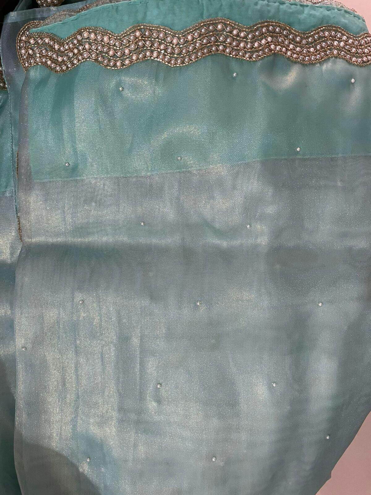 Sea Green Shimmer Organza Saree with Pearl and Sequin work