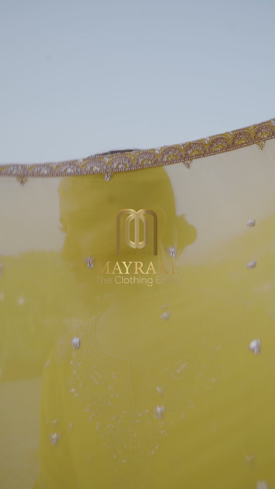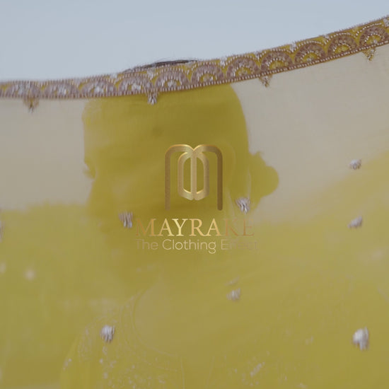 Yellow Viscose Silk Detailed Heavy Embroidered Sharara Set